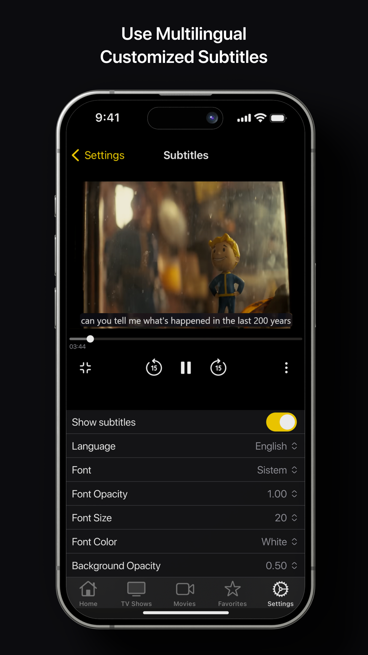 You can download your favorite movies and watch them offline from anywhere. Streamer iOS has integration with opensubtitles.com with which you can connect subtitles and customize the font to your taste, thanks to a variety of settings such as: type, opacity, size, color and even background opacity.